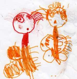 Этот рисунок Катя нарисовала совсем недавно (сейчас ей почти пять). Мне самой очень младенец Иисус понравился (слева от дерева) Я не поняла сначала, потом только разглядела, что он нарисован сначала сбоку, а потом еще сверху, наверное, чтобы было понятнее.