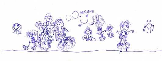 Этот рисунок Катя нарисовала совсем недавно (сейчас ей почти пять). Мне самой очень младенец Иисус понравился (слева от дерева) Я не поняла сначала, потом только разглядела, что он нарисован сначала сбоку, а потом еще сверху, наверное, чтобы было понятнее.