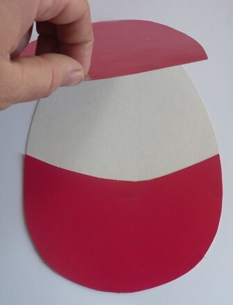 Для наглядности нужно подготовить 12 картонных яиц – карманов: размером они с пол альбомного листа. Вырезаем 2 детали яйца – одну белую (это основа), вторую цветную. Цветную разрезаем на 2 части – верхняя (клапан), нижняя (карман)