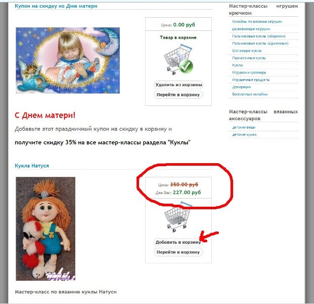 Прокручивайте страничку, выбирайте нужные мастер-классы и нажимайте кнопочку “добавить в корзину”.