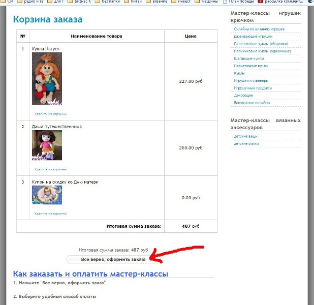 Проверяем заказ и нажимаем “Все верно, оформить заказ”: