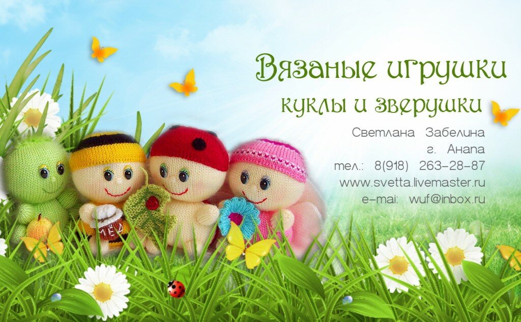 Светлана – замечательный, очень уважаемый мной мастер из Ярмарки Мастеров. Вот ее магазинчик, где вы найдете множество кукол и игрушек, прихваточек и закладочек, вязаных спицами и крючком, а так же мастер-классы по вязанию - http://www.livemaster.ru/svetta